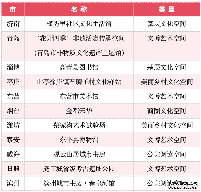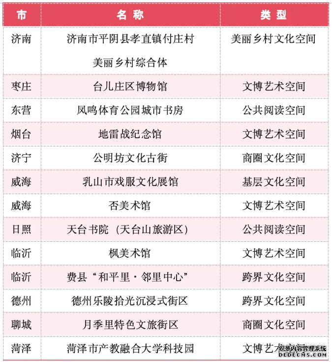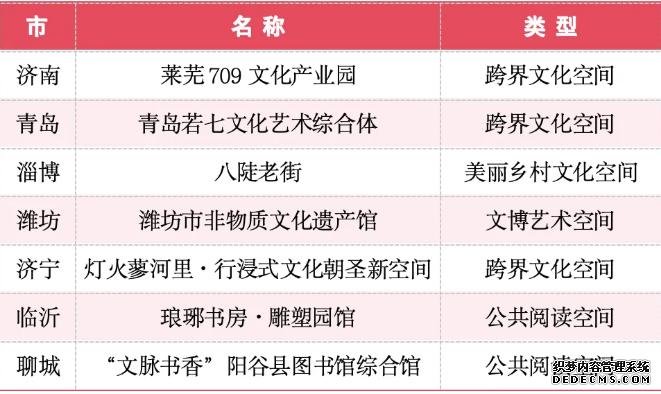 为进一步推动优质文化资源直达基层,广泛引导社会力量参与公共文化服务供给,积极探索新型公共文化空间建设,助推公共文化服务高质量发展的有效路径,切实满足人民群众日益多元的精神文化需求,省文化和旅游厅组织举办2025年山东省新型公共文化空间大赛。经过各市积极申报、省级评审,大赛共评选产生一等奖7个、二等奖11个、三等奖13个,一批兼具创新性、实用性、示范性的新型公共文化空间脱颖而出。 近年来,我省立足新时代公共文化服务高质量发展要求,以新型公共文化空间建设为重要抓手,持续推动公共文化服务体系提质增效、提档升级。本次获奖的空间涵盖公共阅读空间、文博艺术空间、基层文化空间、跨界文化空间、美丽乡村文化空间、商圈文化空间六个类型,在功能融合、场景创新、服务升级等方面亮点突出,为全省新型公共文化空间建设提供了可复制、可推广的实践样本。 2025年山东省新型公共文化空间 大赛获奖名单 一等奖