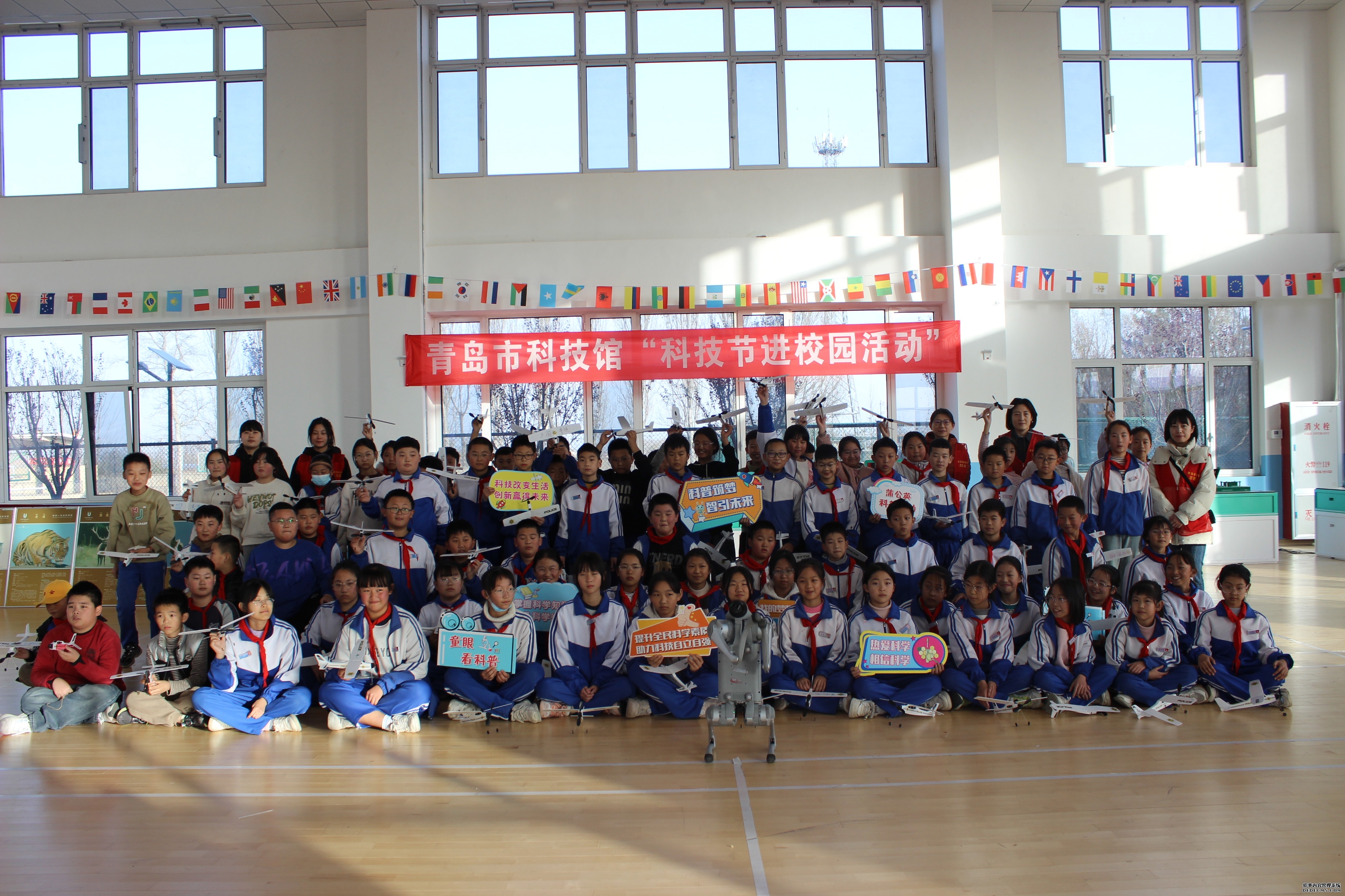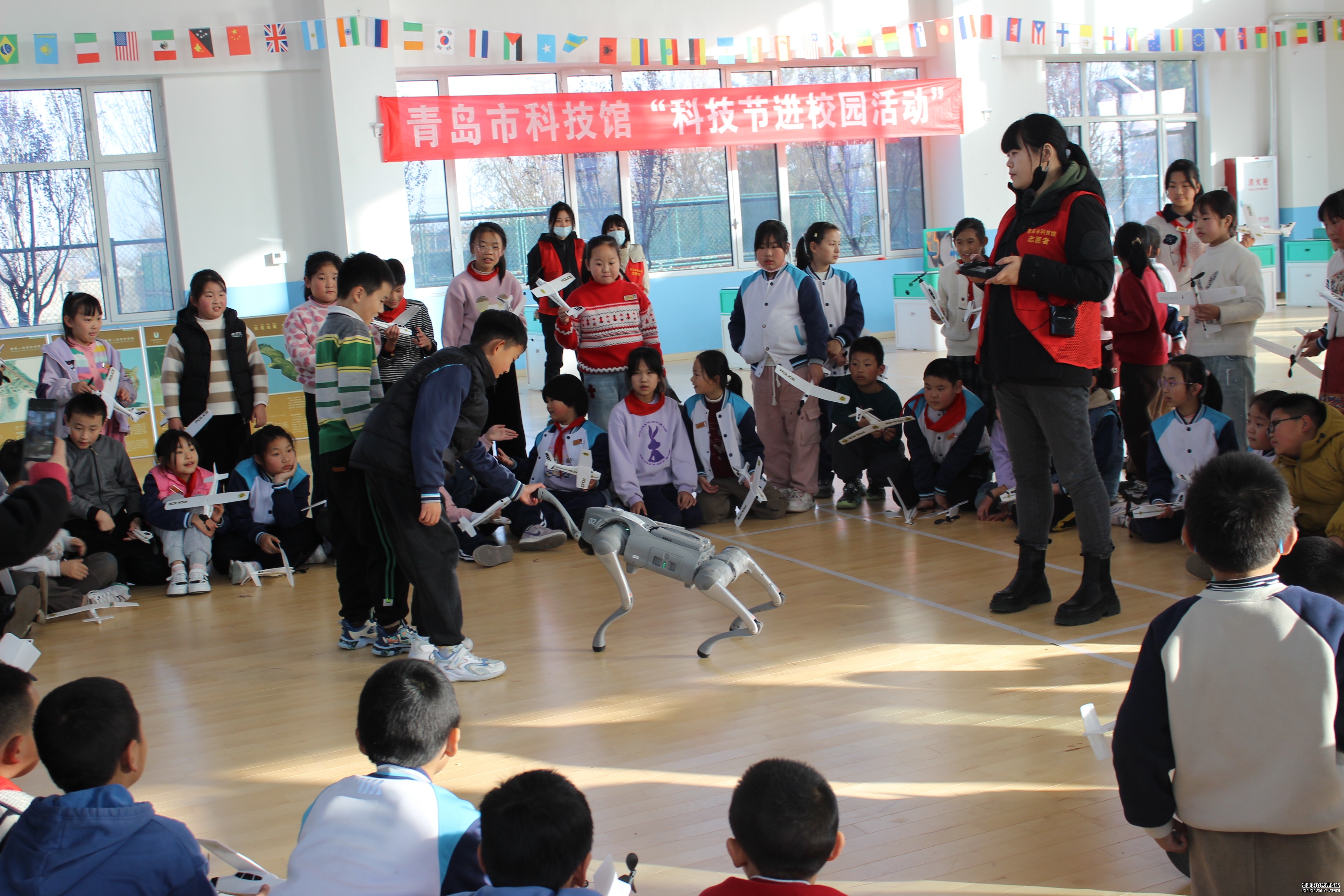 为确保活动精准满足学生们的兴趣与求知欲,青岛市科技馆在活动前期进行了充分调研与精心策划。本次活动内容集互动性、趣味性、知识性于一体,旨在通过亲身体验,激发青少年对科学的好奇心与想象力。 活动现场气氛热烈,各项科普活动分区展开,深深吸引着每一位同学。在“流动展品体验区”,学生们通过亲手操作,直观理解基础物理原理和科学现象;“3D科普展”前,孩子们戴上特制眼镜,惊叹于立体世界的神奇与奥秘;而憨态可掬又本领高强的“机器狗”一经亮相,便成为全场焦点,灵活的互动表演引来阵阵欢呼,让孩子们在欢笑中感受到了人工智能的魅力。