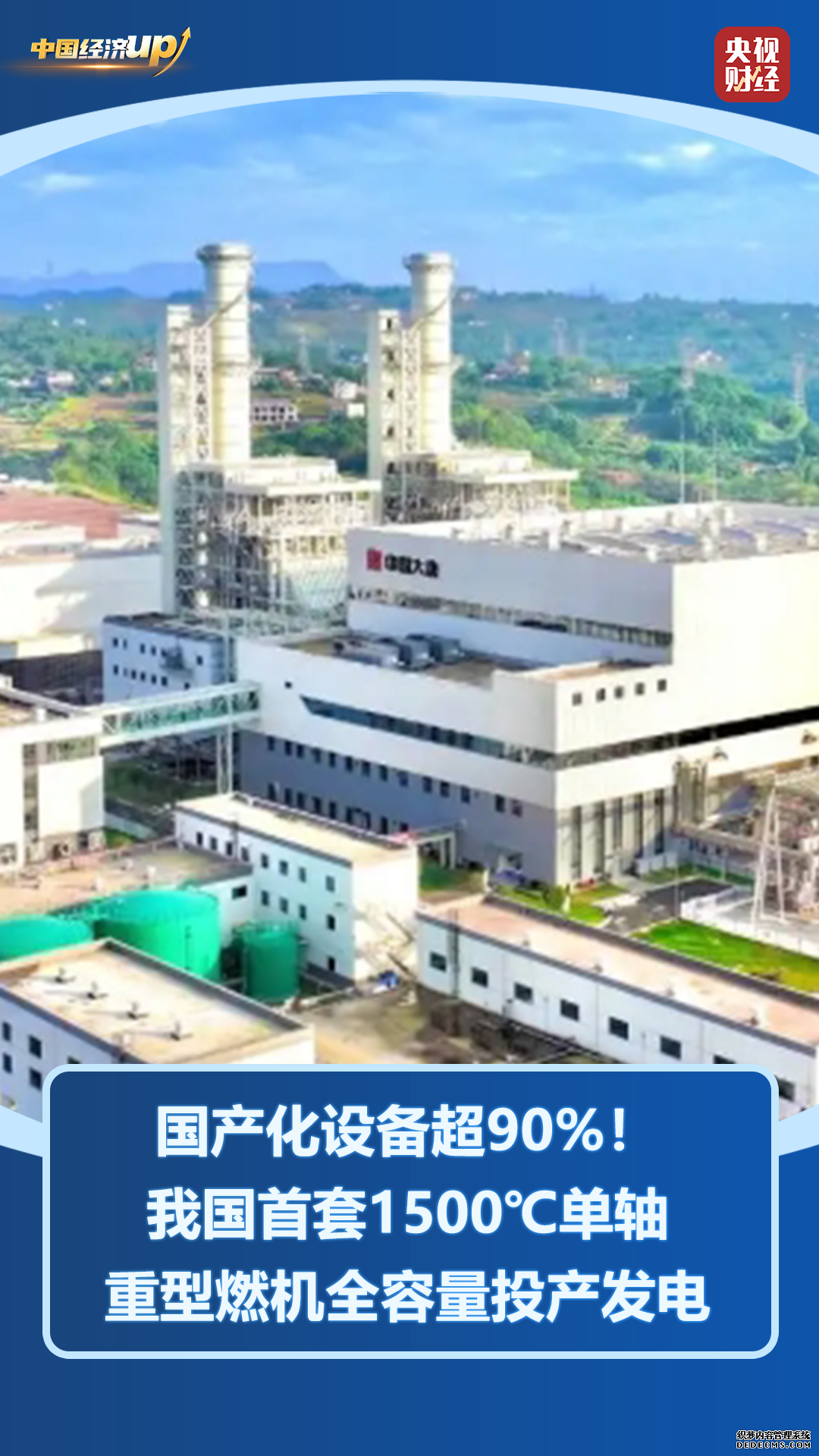 我国煤矿开采和洗选过程中产生的煤泥、煤矸石等低热值燃料储量巨大,这些过去堆在矿区占土地、易自燃的“废料”,常规火电机组无法使用这类燃料。该机组每年可“变废为宝”,清洁转化煤泥、矸石等低热值煤、低品质燃料约200万吨。同时,它还是新型电力系统的“稳定器”。如今风能、太阳能等新能源占比越来越高,但它们“靠天吃饭”的特性容易让电网“忽高忽低”。这台锅炉的深度调峰能力正好破解难题——能在超低负荷工况下持续稳定运行,调峰能力能有效平抑新能源波动,大幅提升电网对新能源的消纳能力。 国产化设备超90%! 我国首套1500℃单轴重型燃机全容量投产发电 11月28日,我国首套1500℃等级单轴重型燃机项目——大唐重庆江津燃机全容量投产发电,填补了国内“F”级改进型单轴重型燃机的空白。 大唐重庆江津燃机项目2号机组顺利通过168小时试运行,各主辅设备运行稳定,各参数满足设计技术规范要求,各环保指标符合国家标准,标志着该项目实现全容量投产发电。