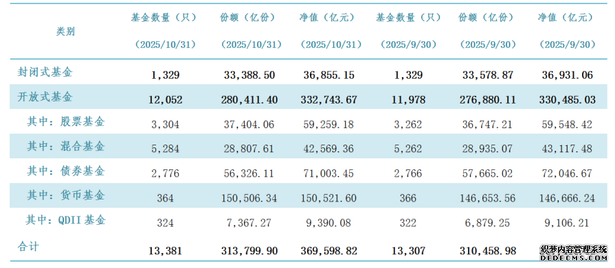 中国基金业协会最新发布的数据显示,截至2025年10月底,我国境内公募基金资产净值规模合计36.96万亿元。