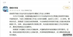 据昆明铁路局昆明站官方微博消息,11月27日凌晨,检测地震设备的55537次试验列车在正常通过昆明洛羊镇站内曲线处时,与进入线路的施工作业人员发生碰撞,造成11人死亡、2人受伤。...